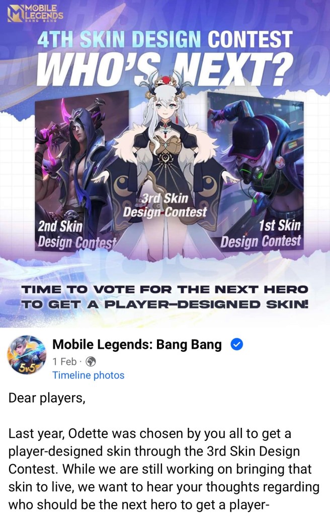 Players are given a chance to create a skin for heroes through drawing digitally and entering a voting system by submitting their artwork for the skins, in which other players who play the game can vote for the best designed skin. After a design has been voted for and there is a winner, Moonton interacts with the designer and creates their skin in game for people to buy and promotes the artist. Therefore, the artist has gained promotion by working to create a skin and in exchange Moonton gains a free design and approval of in game players and when the skin is released, they gain a lot of profit. Moreover, Mobile legends has an “advanced server” where players get selected to test unreleased features of the game and provide “sneak peaks” as well as reviews of what might be updated into the game, which fans watch and provide their opinions and suggestions about it and these thoughts are carried out by the testers to Moonton to take into consideration. The testers are paid through in game currency for their contribution which they then can buy skins with, meanwhile Moonton gets first hand player’s opinions as well as their fans thoughts on the updates the game can go through, illustrating that the majority of players will be in favour of the feature when it`s released.